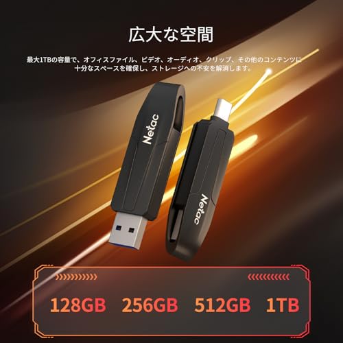 容量: Netac US8 外付けSSD 128GB USB3.2Gen2 Type-AおよびType-C対応,速度: 読み出し高达550MB/秒、書き込み最大500MB/秒,適用システム:Windows 7/8/10+ Mac OS X 10.5 + Linux 2.6.x またはそれ以上,高品質の亜鉛合金を使用した回転式のデザインと、50グラムのコンパクトで軽量なケースは、デザイン性と携帯性を兼ね備えている。,安心保証 -5年間の限定正规保証
