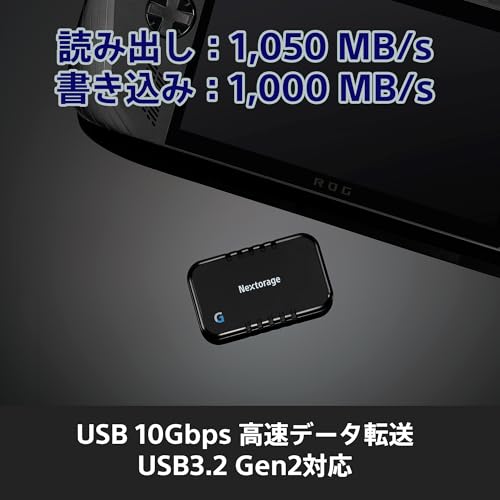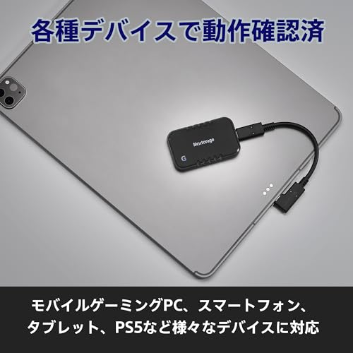 Nextorage 日本メーカー L字型ケーブル付属 SSD 外付け 2TB USB3.2 Gen2 ゲーミング・モバイル機器向け NX-P2SE Gシリーズ Type-C 最大転送速度1050MB/s ポータブルゲーム機 Windows MacOS PS5 PS4 iPhone15 Pro iPhone15 Pro Max 動作確認済み NX-P2SE2TB/GLEB ネクストレージ