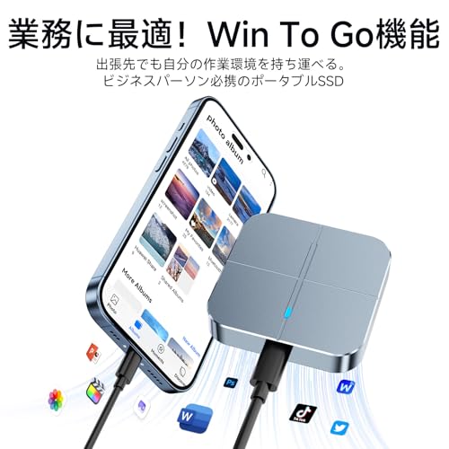 【最大500MB/sの高速転送!時間を有効活用】USB3.2 Gen1に対応した本製品は、最大読み取り速度500MB/s・書き込み速度400MB/sを実現。10GBの4K動画もわずか20秒で転送完了。HDDより数倍速いスピードで、写真・動画・資料などの大容量ファイルもストレスなく処理できます。外付けSSD 2TB / 1TB / 500GBの選択肢で用途に合わせて選べます。,【マグネット式でどこでも安定設置|映像機材にも対応】本体裏にN52磁石を内蔵し、ノートPCやデスクの金属部分、三脚、カメラリグなどにもピタッと装着可能。底面には標準1/4ネジ穴もあり、撮影機材への取り付けにも便利。PS5やゲーミングPC用の外付けSSDとしても活躍し、プロの映像制作にも理想的なストレージです。,【アルミ合金ボディ採用|高耐久&放熱性抜群】丈夫な亜鉛合金素材を使用し、耐衝撃・耐落下性に優れています。熱を素早く逃がす設計により、大容量ファイル転送中でも快適な操作性を保ちます。外出先やオフィス、自宅での使用においても安心の小型・軽量ボディ(62×62×13mm/123g)。外付けSSDおすすめモデルです。