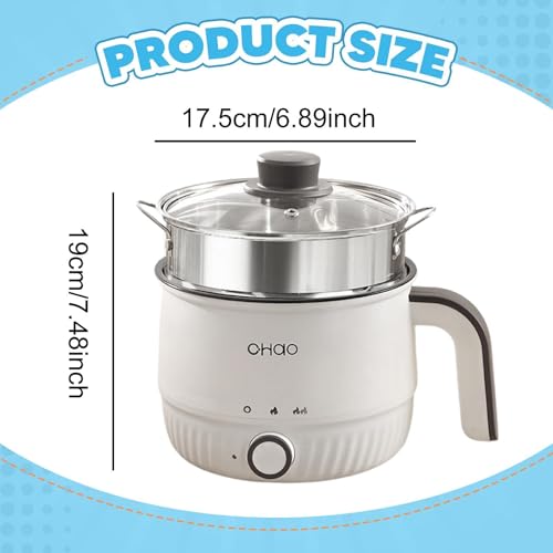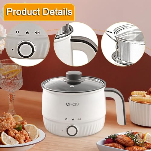 DeeRace 【1.8L】電気鍋 小型電気鍋 電気調理鍋 【2025新開発】ミニラーメン鍋 火力2段階調整 卓上 なべ料理 一人用 1台多役(ラーメン・しゃぶしゃぶ・ご飯・味噌汁・卵調理可能) 自宅・旅行・宿舎向け お手入れ簡単, スチールスチーマー付き